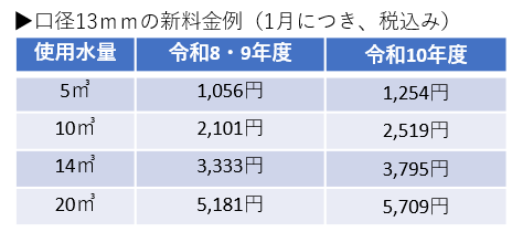 【一般的な家庭】メーター口径13㎜、14㎥/月使用した場合 ※令和8・9年度
